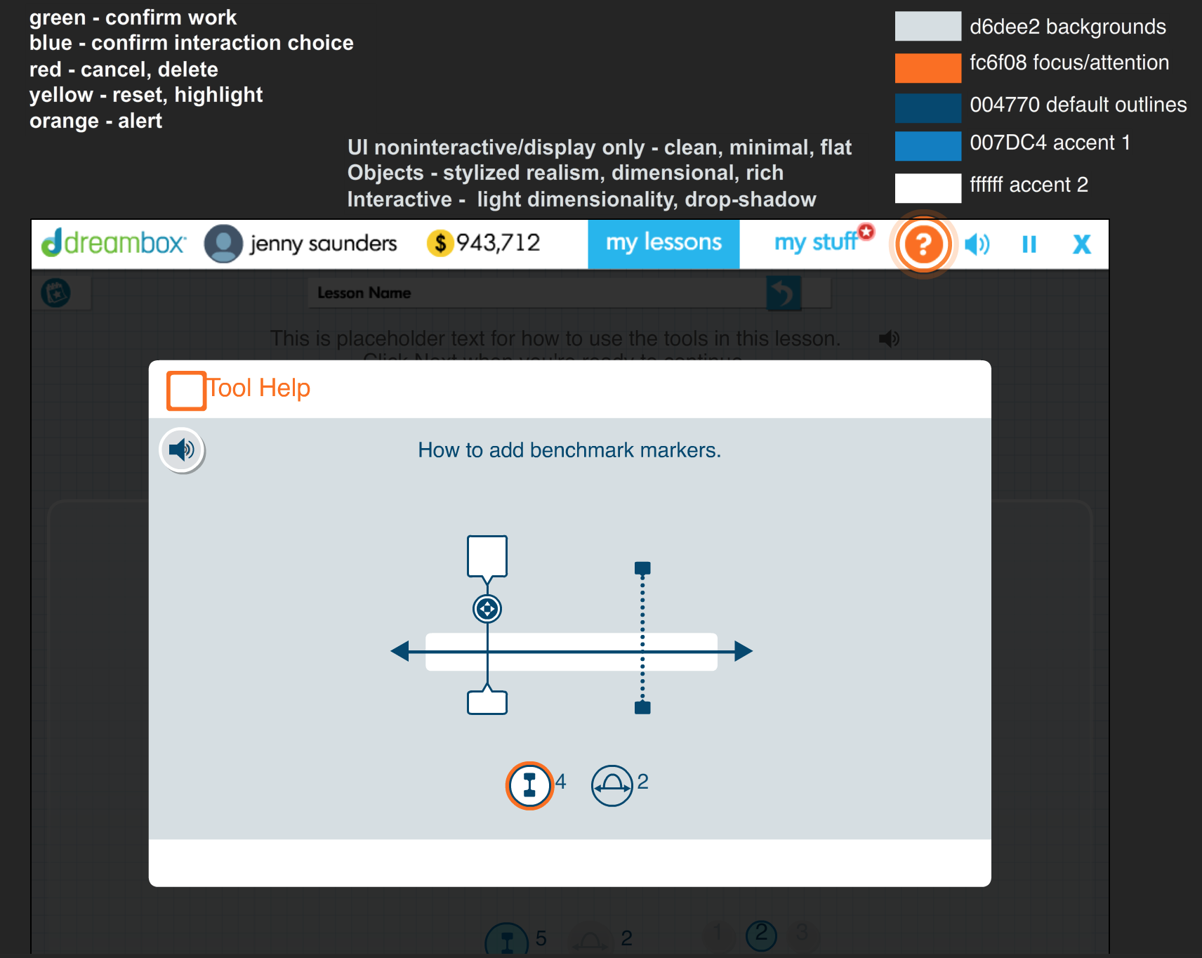 I took the initiative to design a new lesson help feature for how to interact with the lesson “tools” and manipulatives and wore the Product Designer hat for this project, from UIUX, Visual and Motion Design System, and Development.